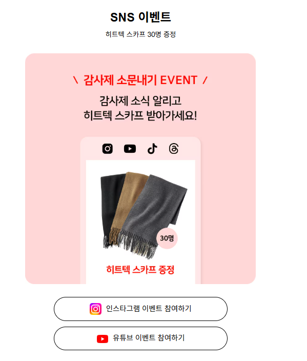✔️ 유니클로 다이어리, 히트텍 스카프 등 다양한 굿즈 증정