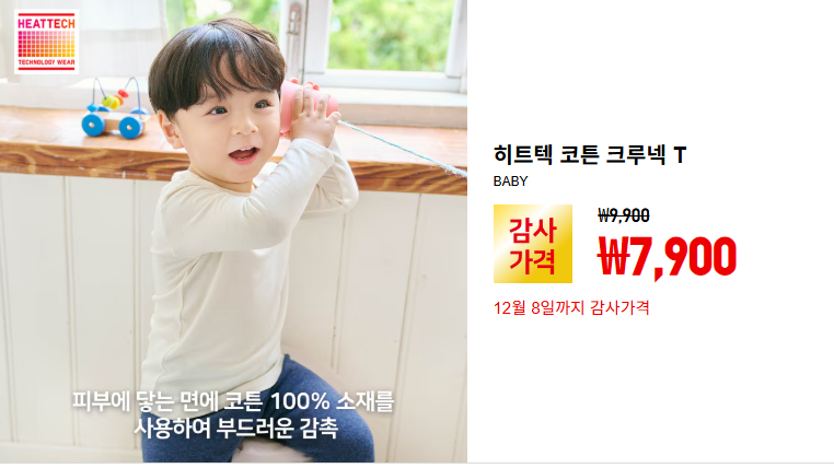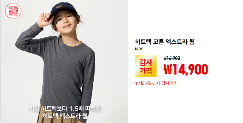 | ① 히트텍 | 얇지만 뛰어난 보온성 / 엑스트라 웜, 울트라 웜 등 라인 다양 | 온 가족 겨울 필수템 |