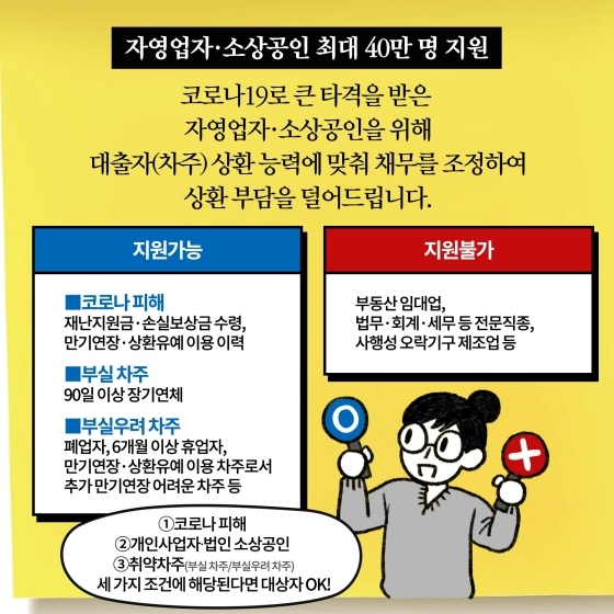 지원 내용은 ‘부실차주’와 ‘부실우려차주’에 따라 달라집니다.