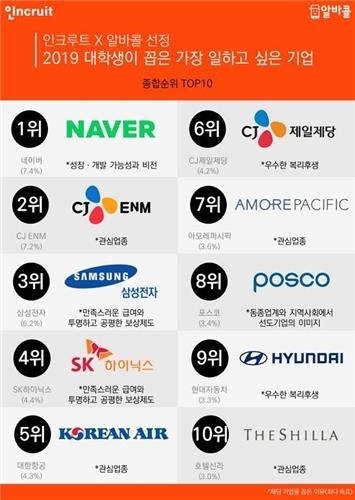 한편, 지난해 1위였던 SK하이닉스는 15%로 2위로 내려앉았고, 그 뒤를 네이버(8%), 현대자동차(7%), 삼성전자(7%), CJ제일제당(5%) 등이 이었습니다.